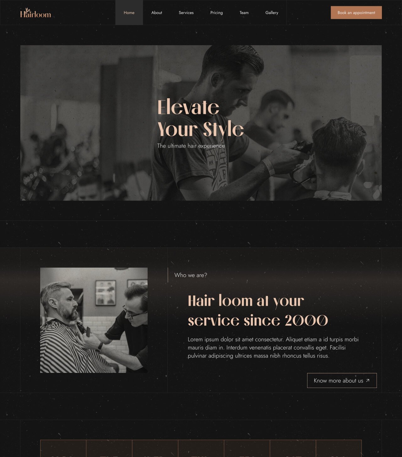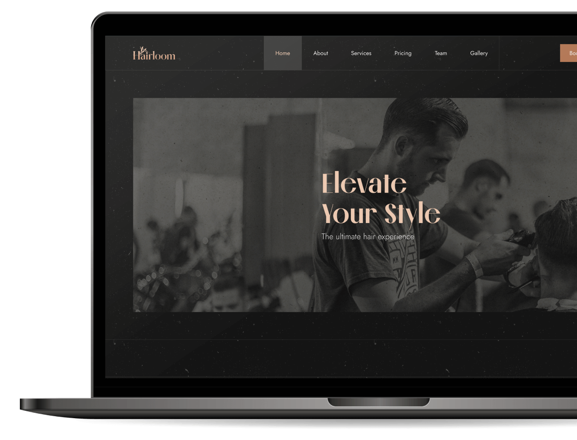 Full marketing landing page website for a premium hair saloon brand.